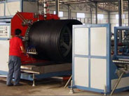塑料管材作为化学建材的重要组成部分,以其优越的性能,卫生、环保、低耗等为广大用户所广泛接受,塑料管材生产线是由控制系统、挤出机、机头、定型冷却系统、牵引机、行星切割装置及翻料架组成。每条管材生产线有两台挤出机,其主要一台挤出机采用强力输送衬套及高效螺杆,另一台较小的挤出机用于挤出标志线。